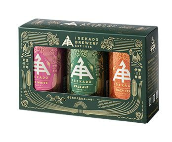多彩な味わいが魅力のクラフトビールですが、種 類が多くて、どれから飲めば良いのか悩んでいる お客様に、まずお勧めしているのがこちらの3缶パックセットです。イセカドの定番商品から、味わいも飲み口も違う3種類をセットにしました。 お好みのビールを探している方にもお勧めのセッ卜です。