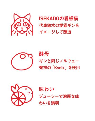 このビールはISEKADOの社長 鈴木 の愛猫ギンちゃんをイメージして醸造しました。ギンちゃんは血統書付きのノルウェージャンフォレストキャットで大きな身体にふわふわ毛並みがキュート。ノルウェージャンフォレストから引用して、ノルウェーの林と名づけました。