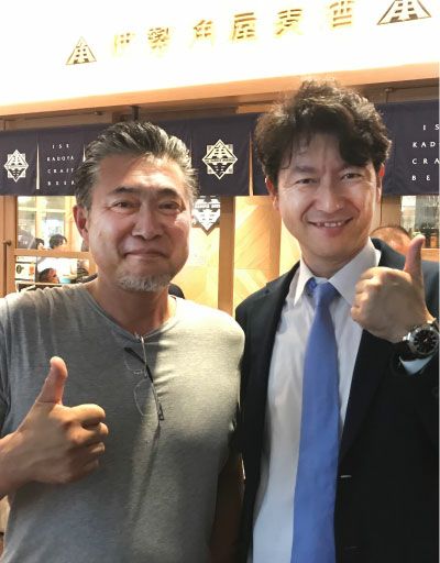 ふたりの事業でのコラボレーションの象徴として、伊勢角屋麦酒八重洲店 周年記念としてできたビールが「鈴なり福きたるIPA」です。